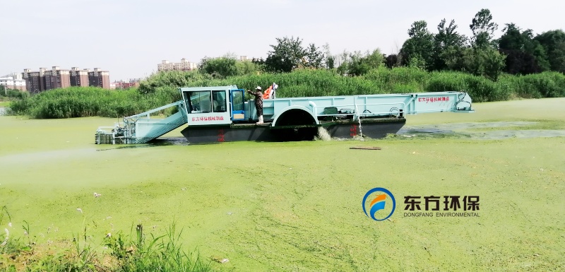水草割收機(jī)亮相清水河